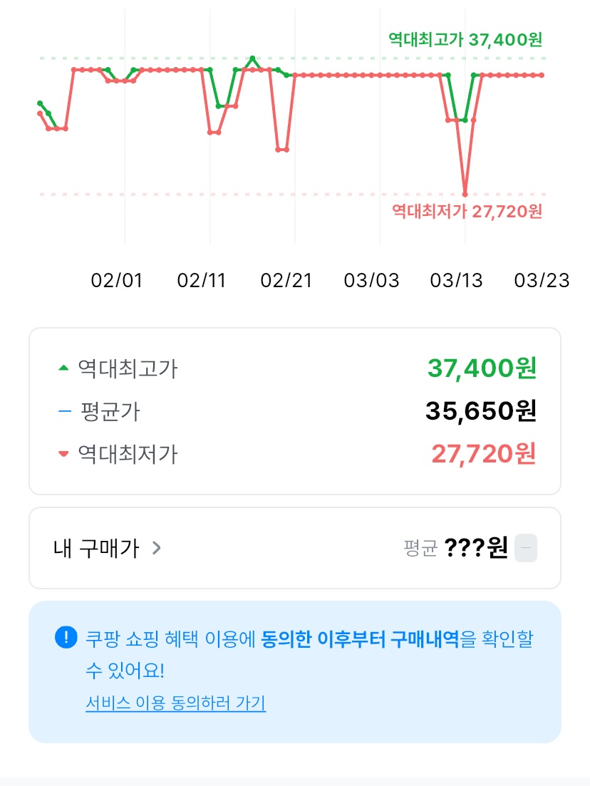 상품의 가격 변동 내역을 그래프로 확인할 수 있어서, 지금이 구매 타이밍인지 쉽게 판단할 수 있습니다.